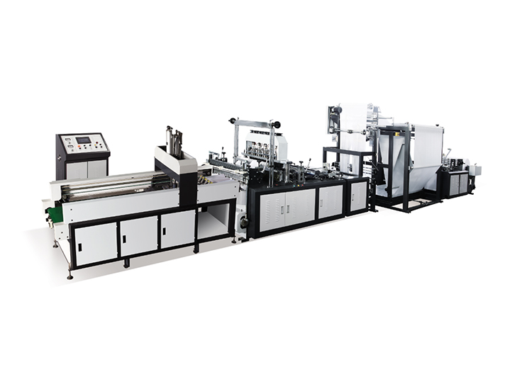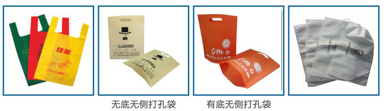 1.該機適用原材料為無紡布,能加工各種不同規格,不同型狀的無紡布袋,平口袋,手提平口袋,背心袋,穿繩袋及立體袋等,該機集機電為一體,運用LCD觸摸屏操作。配以步進步式定長,自動上料,光電跟蹤,電腦自動定位,電腦自動糾邊,無料自動停機,準確,平穩,自動計數,即可設定計數報警,自動打孔,自動燙把手等工控裝置,使其生產的成品封線牢固,切線美觀。高速效,是你可以放心適用的優質環保型制袋設備。